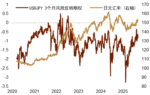美元/日元:日元汇率走势相似,风险逆转期权走高,市场或预期后续日元仍有贬值压力。