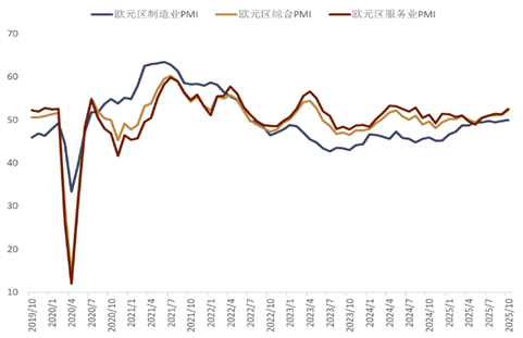 ► 10月公布的通胀数据有所减弱,这使得市场对美联储未来的降息预期一度维持在高位。但PMI为代表的经济数据显示美国经济依旧保持了一定韧性;加之10月末的FOMC会议上,虽然美联储兑现了市场降息25基点的预期,但发布会上鲍威尔的表态明显较市场预期更偏鹰派,这也支撑了美元延续了上涨趋势。向前看,市场目前虽然依旧预期2026年9月前美联储还可能有接近3次的降息预期,这大概率可能会在长期压制美元的反弹高度,但美国政府关门后大多经济数据都未能如期公布,而如果11月即将公布的少量数据再次展示出韧性,那么美元短期内下行的空间可能会比较有限;总体看,美元大概率可能会在11月维持震荡的行情。